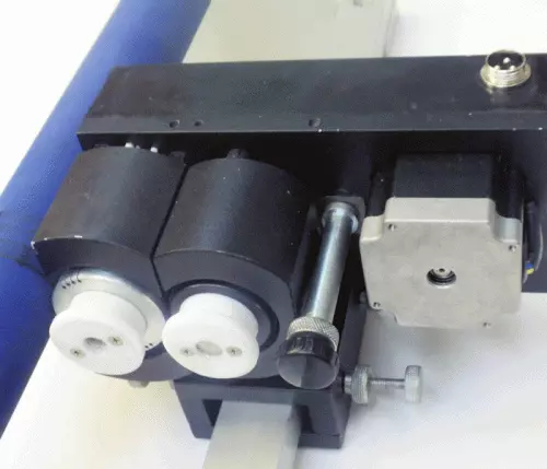 Скорость вращения головки с цифрами подбирается равной скорости, с которой подается упаковочная пленка (подбор происходит вручную в меню принтера, либо автоматически при использовании энкодера сопряженного с блоком управления принтера). Старт срабатывания принтера происходит по фотометке, возможно регулировка задержки старта, для корректировки печати вдоль упаковочной пленки. Поперечная регулировка печати происходит за счет передвижения принтера по раме принтера. Печать по упаковке принтером в стандартной комплектации происходит поперек движения упаковочной пленки. Возможна печать и в длину пленки при использовании специальной головки с комплектом цифр для продольной печати.